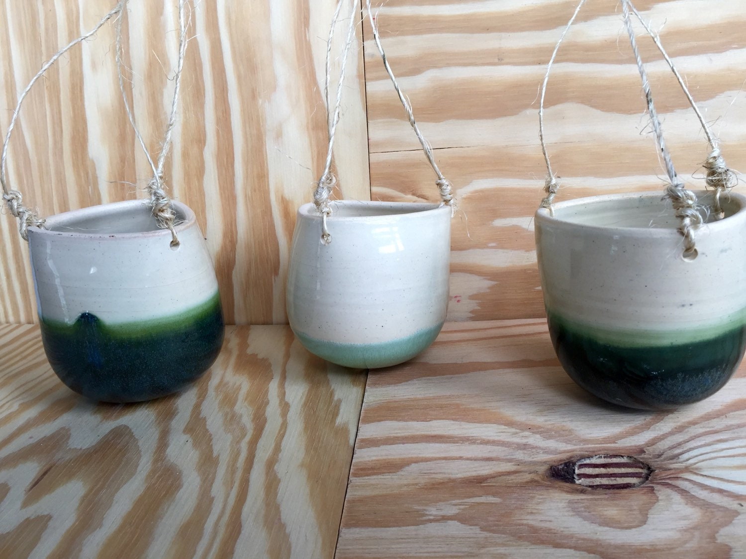 These nifty little planters were thrown on the potters wheel then flipped over and trimmed into a round orb on the bottom and punctured with three holes for drainage.