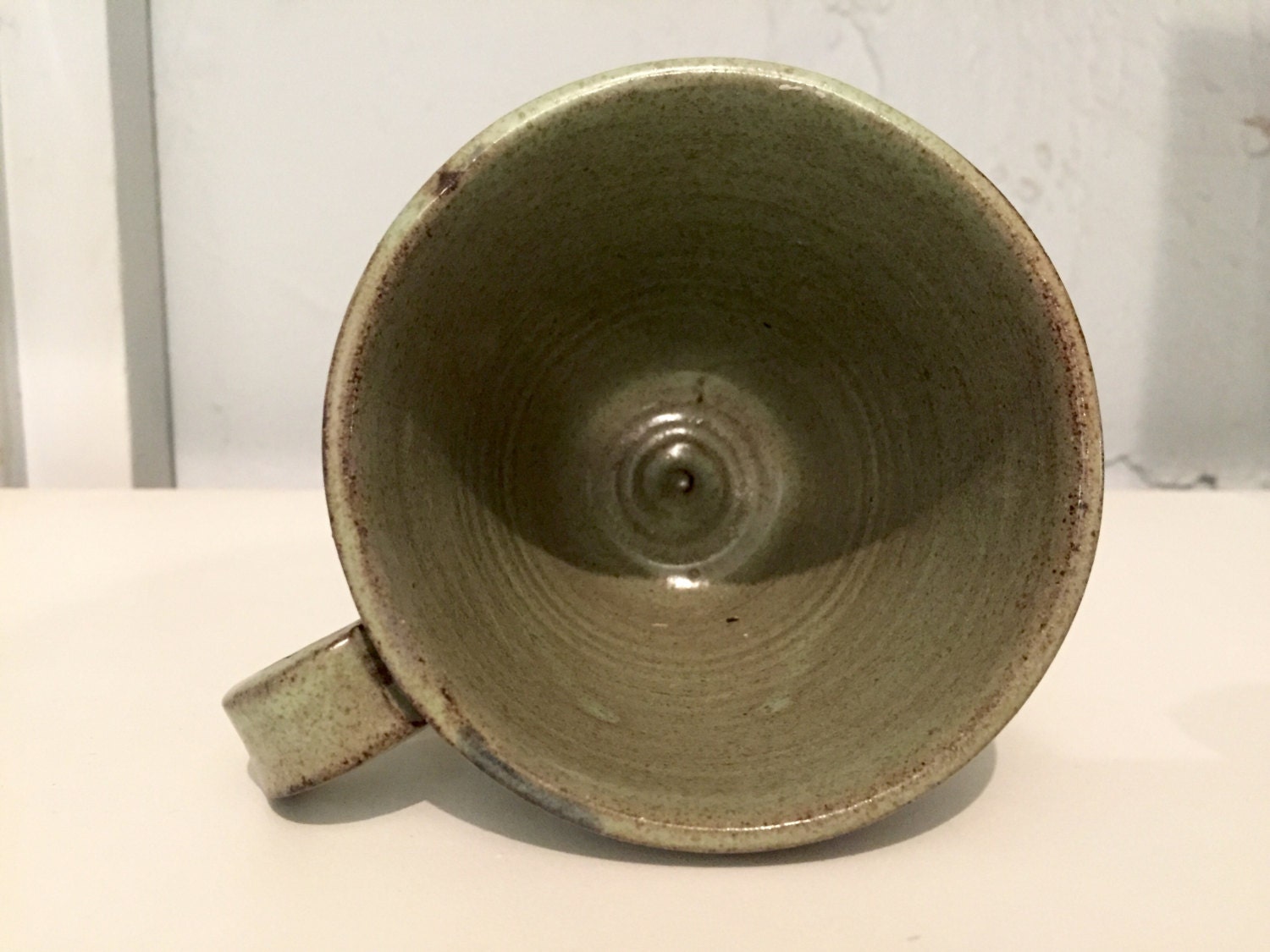 Modern ceramic mug made on the potters wheel then dipped in a sage green glaze.