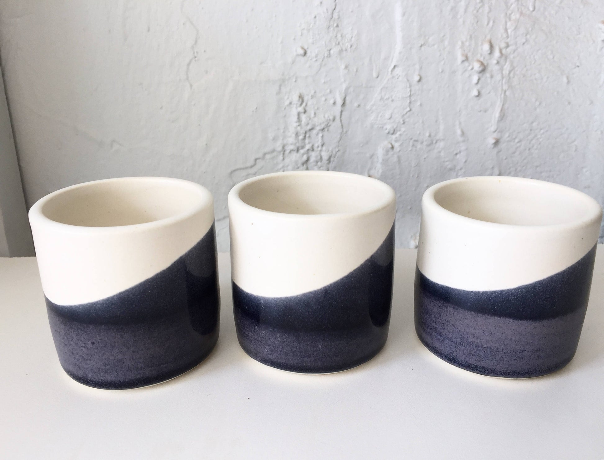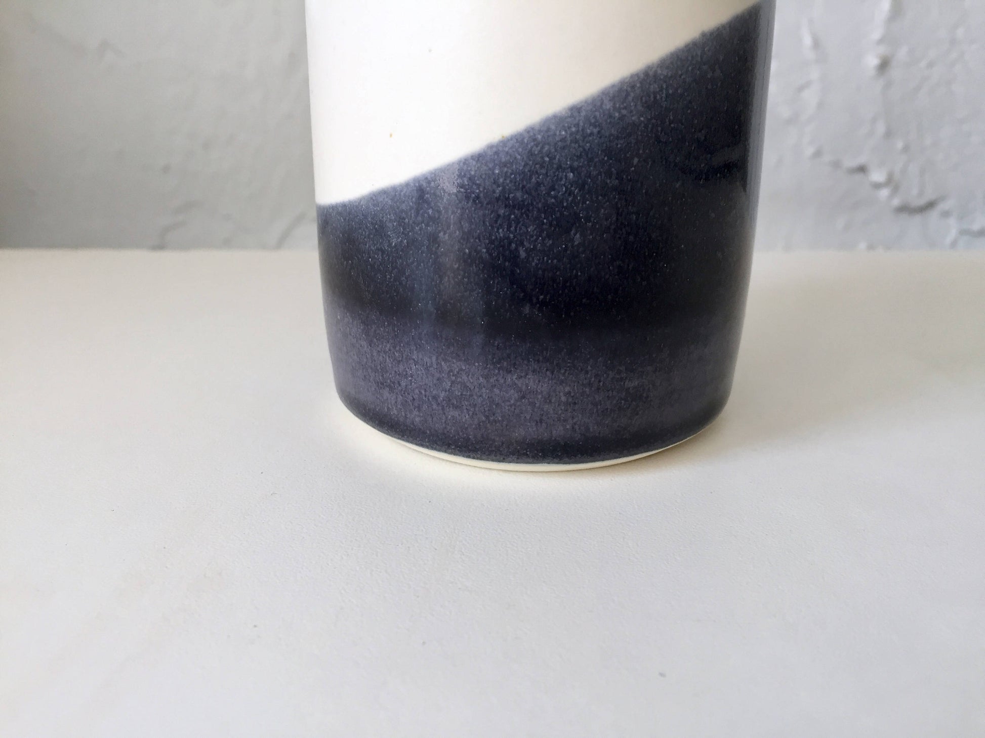 This mini flower planter was thrown on the potters wheel then glazed in white And a purple/gray glaze.