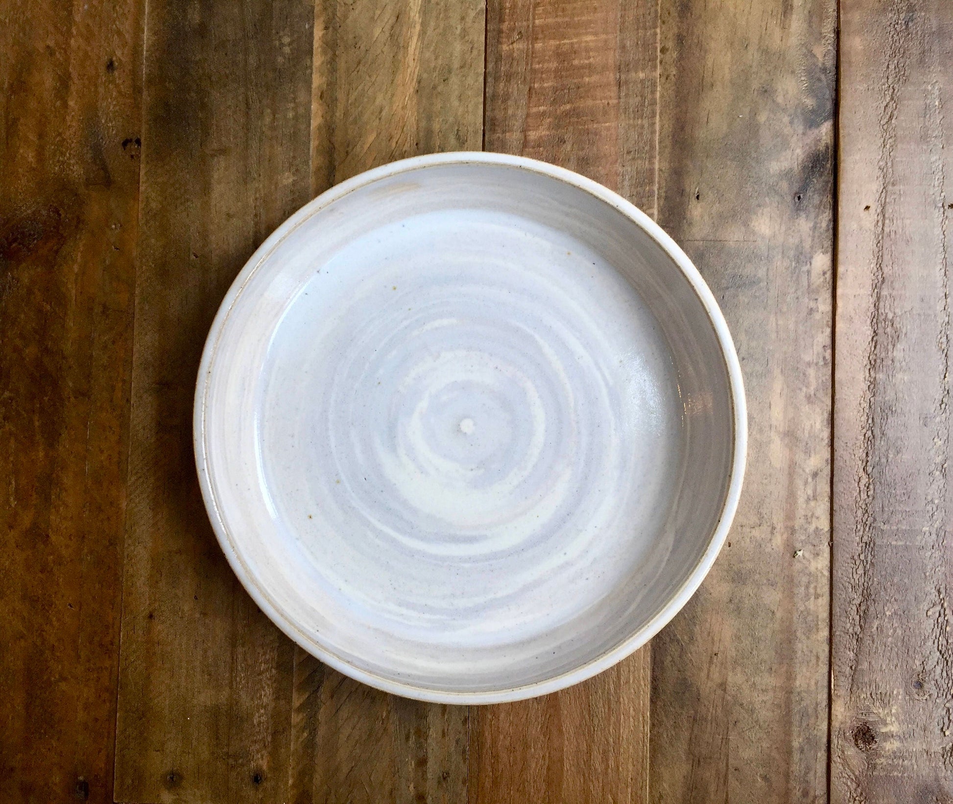 These modern BLATES were thrown on the potters wheel using two different types of stoneware. one beige and one white, they were marbled together to create that natural swirl pattern. Glazed on the inside in a translucent pearl color and left unglazed on the outside to expose the marble pattern of the clay. more like a plate then a bowl, the sides are a bit higher and the base a bit smaller then a traditional plate which make them excellent for foods that you want to contain like pasta, salad and more!