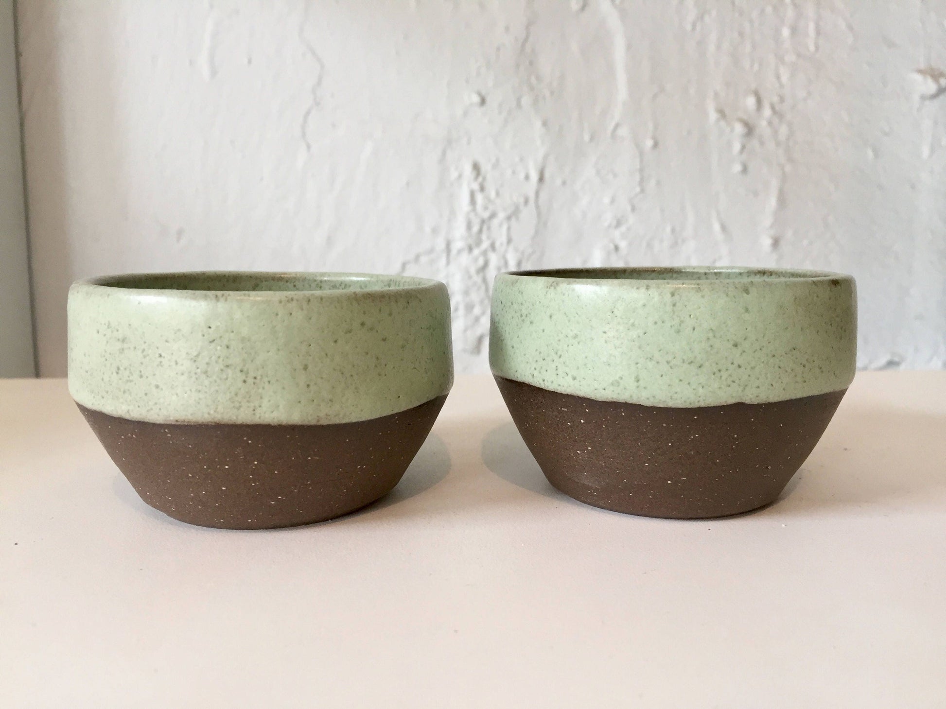 These unique multipurpose ramekins were thrown on the potters wheel then glazed in warm sage green. These small serving bowls are perfect for cooking, kitchen prep, using as sauce bowls and more.