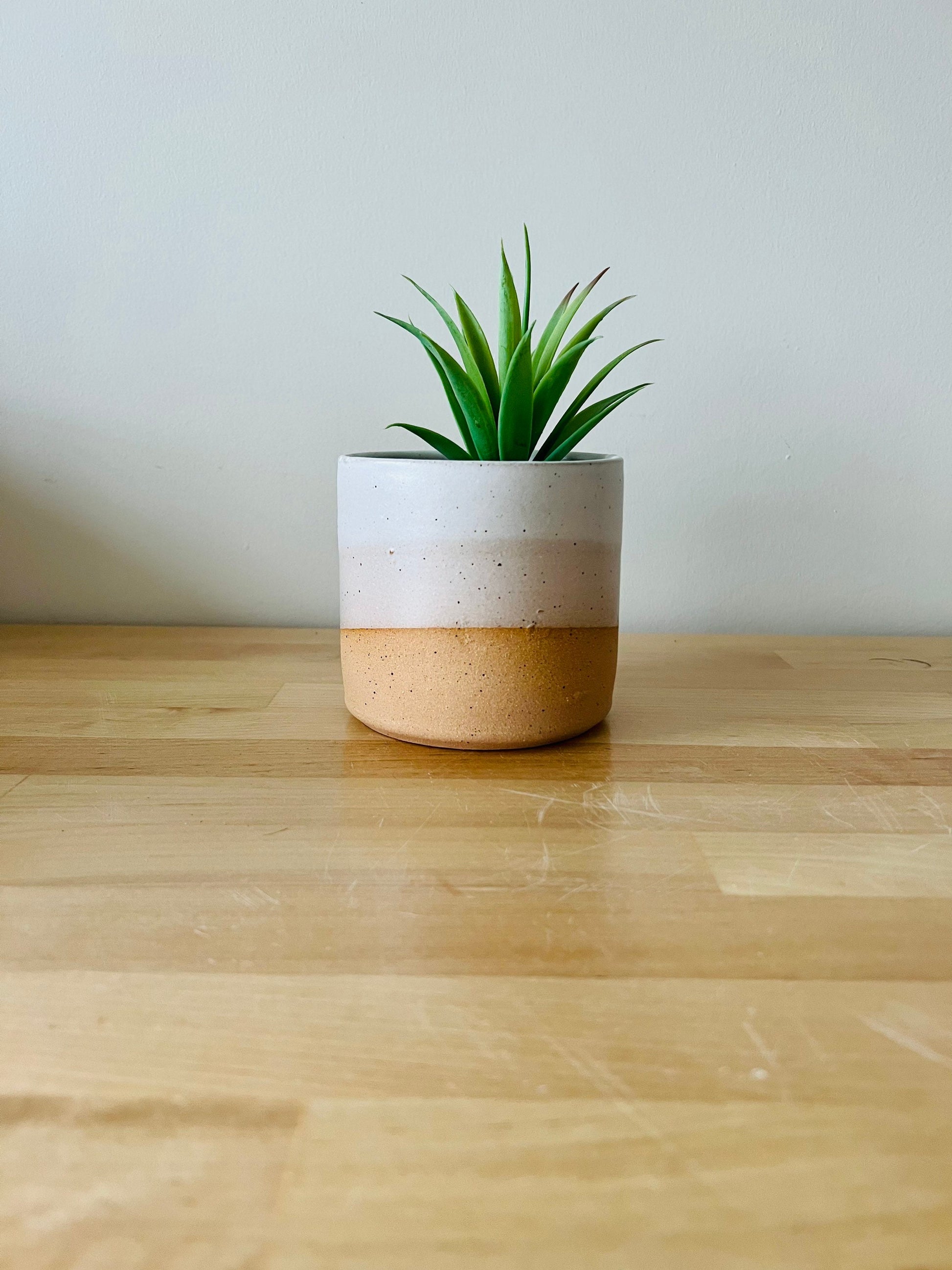 Handmade ceramic succulent/small plant pot. made on the potters wheel and dipped twice in a warm silk white. has drainage hole.