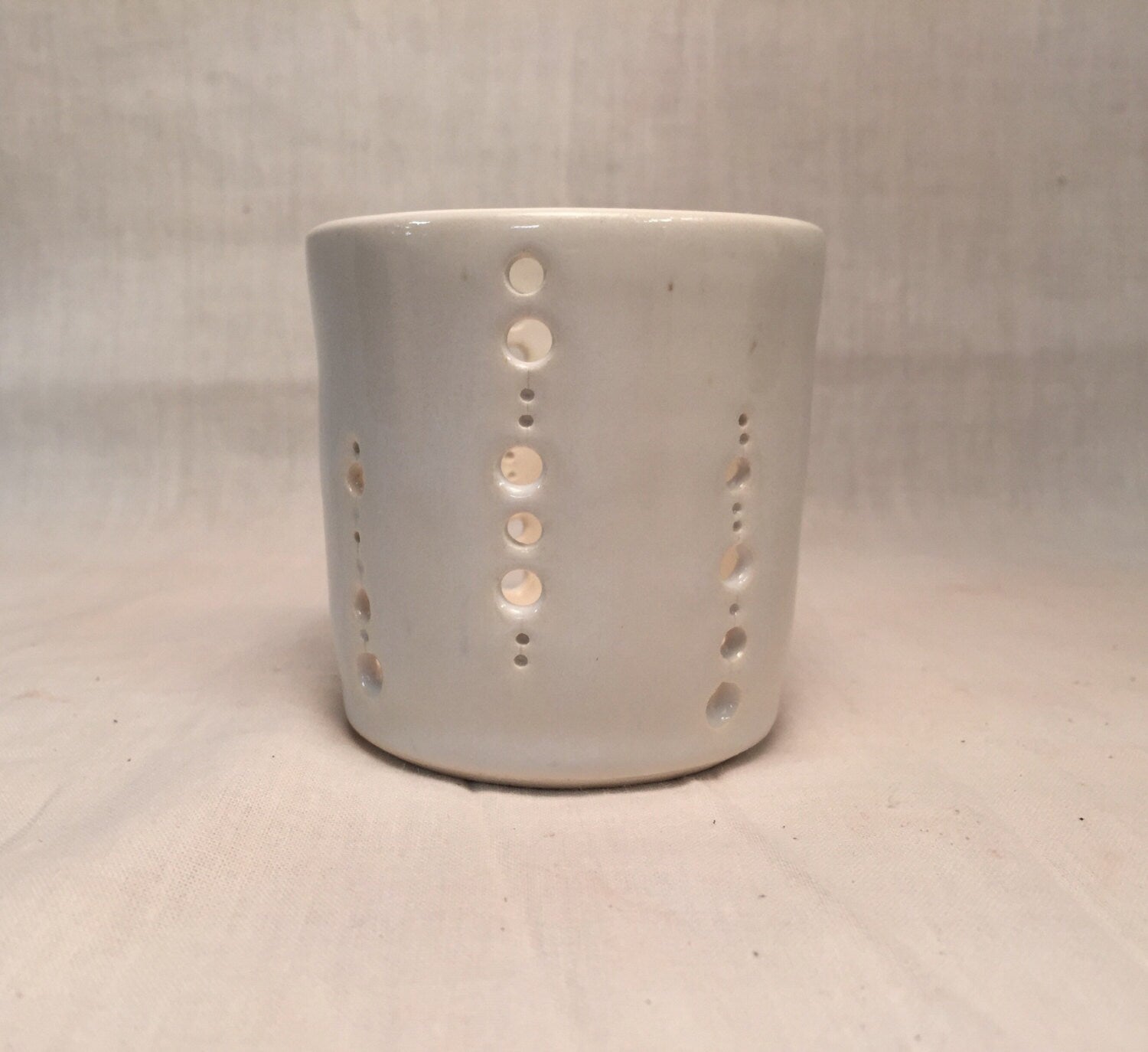 candle/tea light holders were thrown on the potters wheel then handcarved free hand style. Glazed in a vibrant white This tea light holder set are decorative and functional and look great even when not on use!