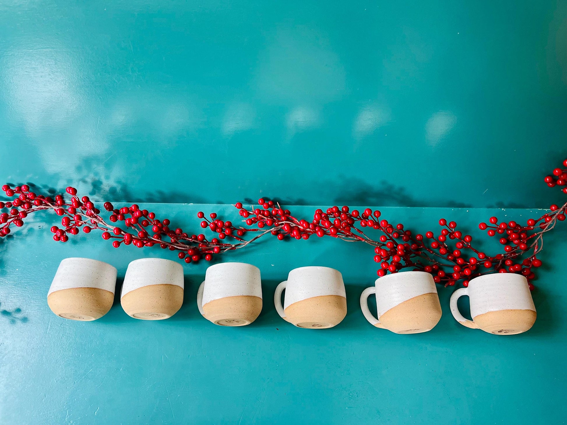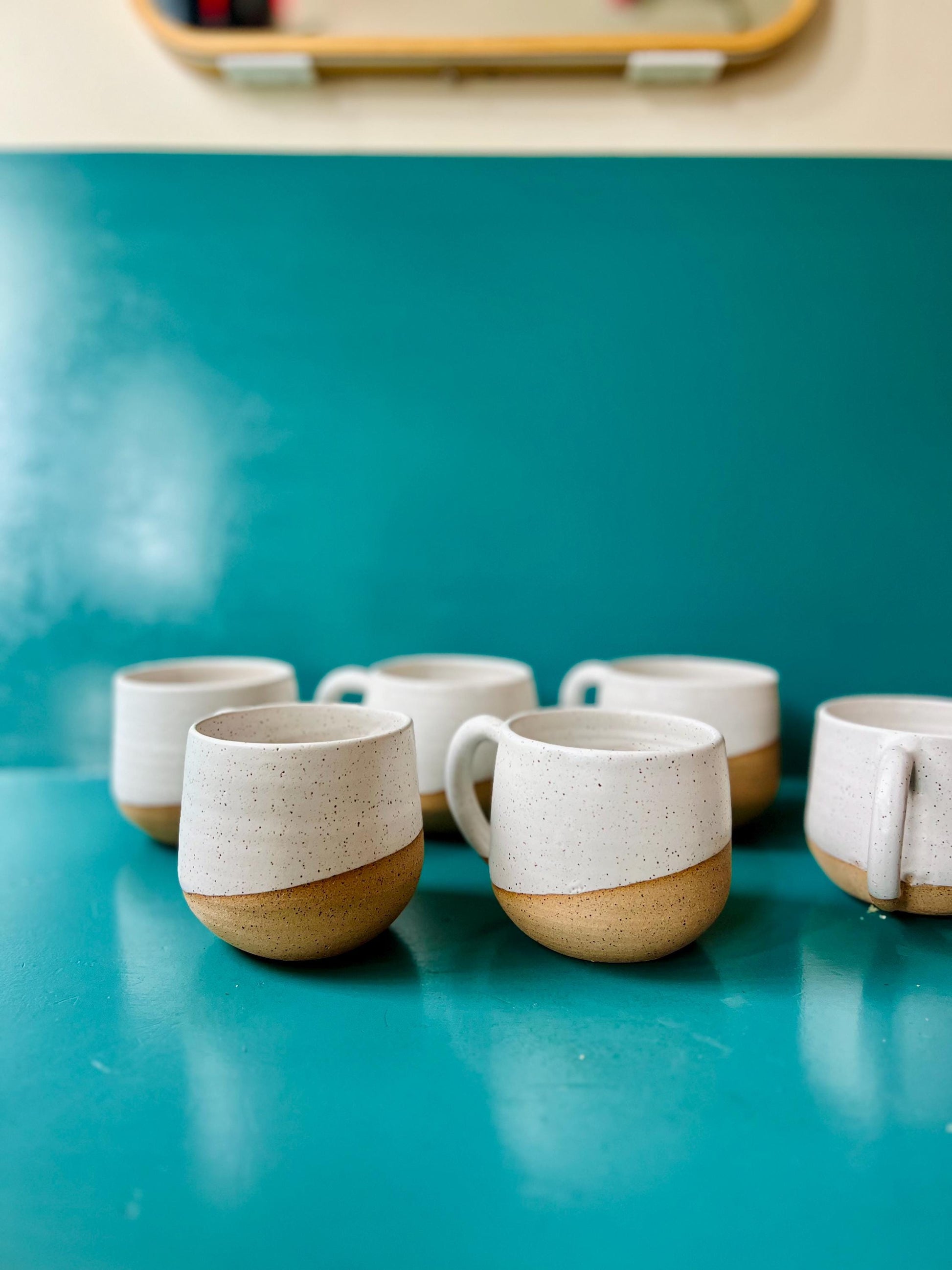Each piece is handmade, making every mug unique in color, size, and shape.