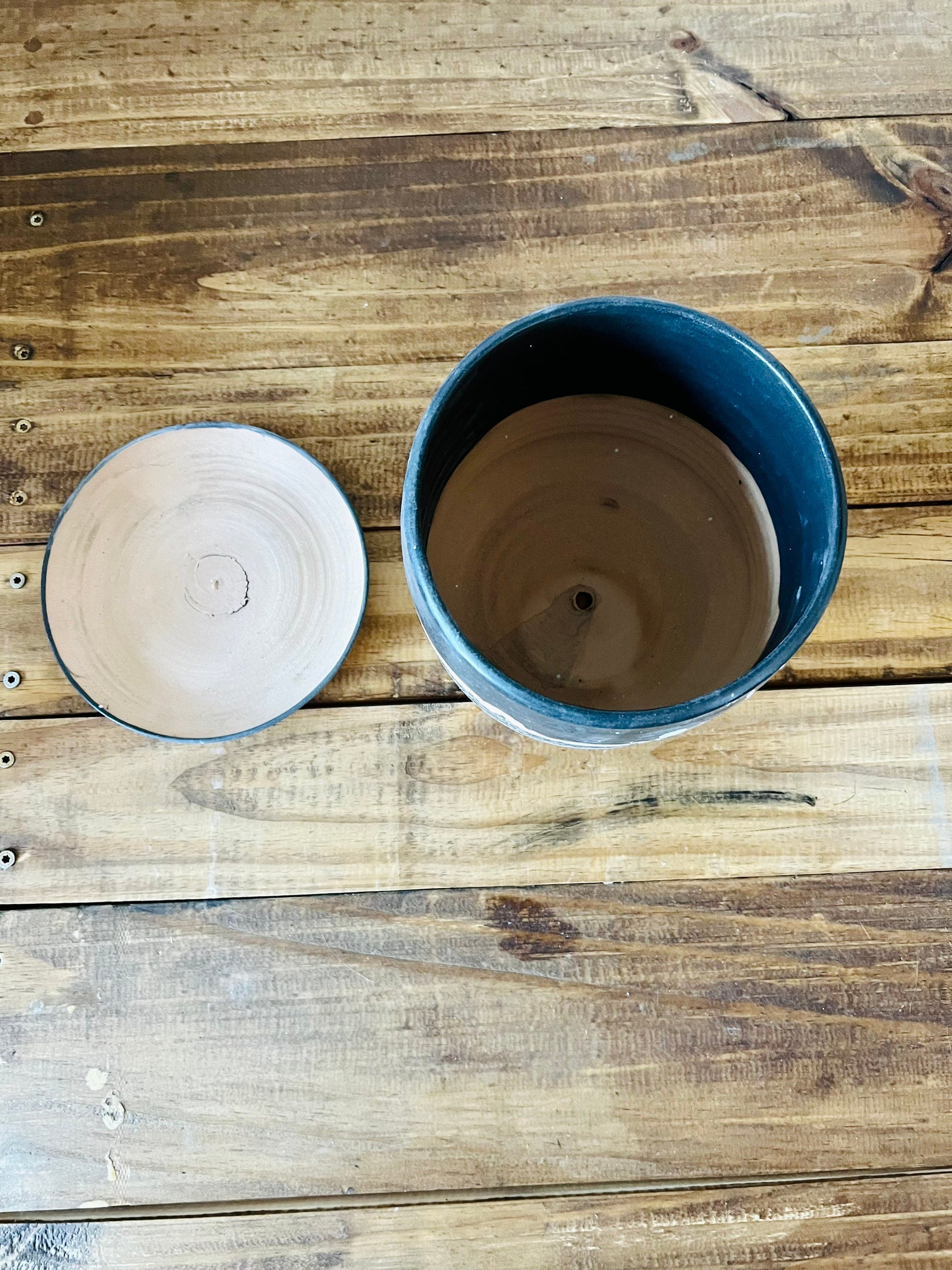Seconds- 6 inch Round Bottom planter. Black tree scape. Ceramic.