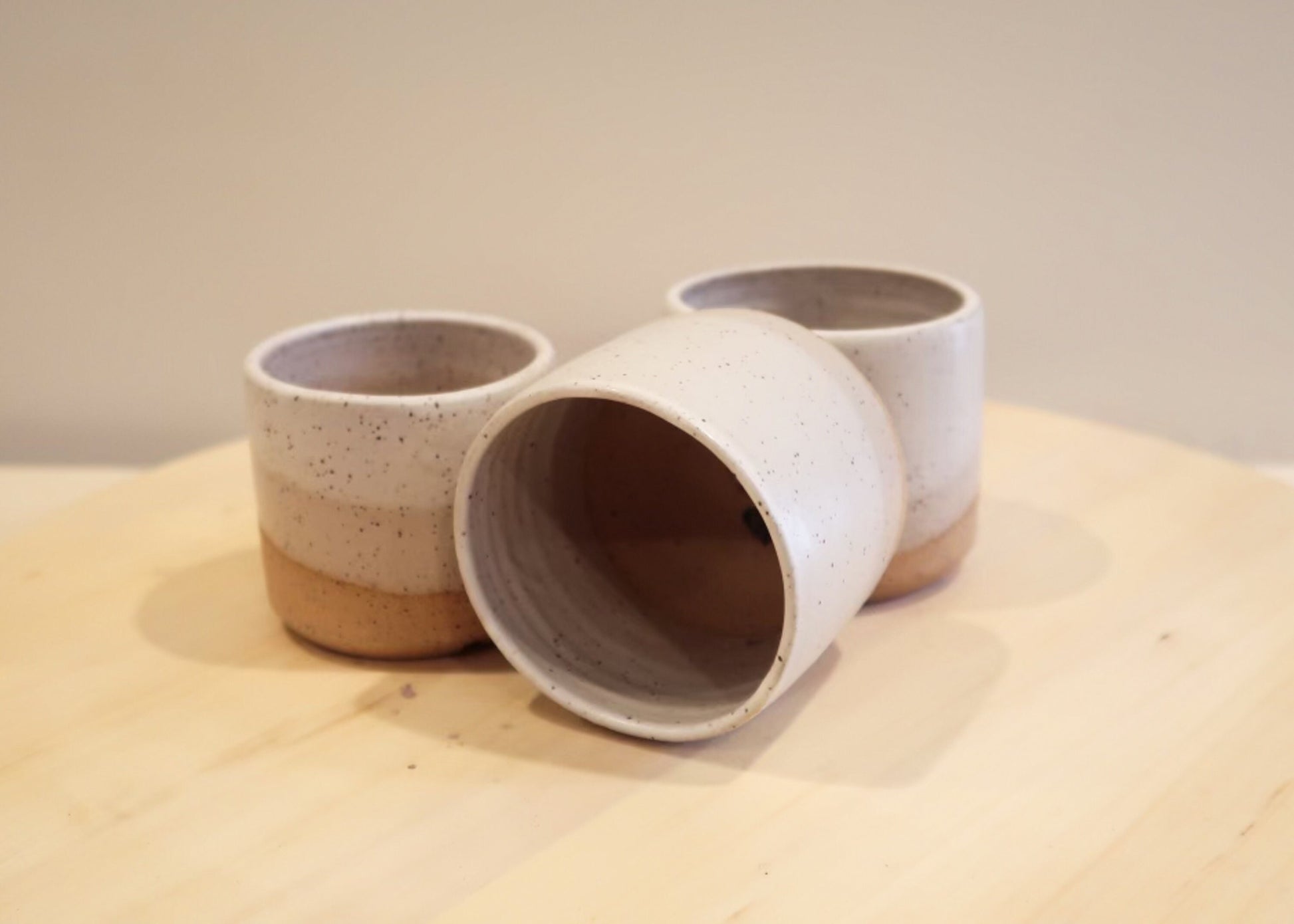 These ceramic succulent/small plant pots and saucers are thrown on the potter‘s wheel and dipped twice in a warm silk white with a speckled finish. Perfect for any windowsill or shelf, each pot features a hole for water drainage.