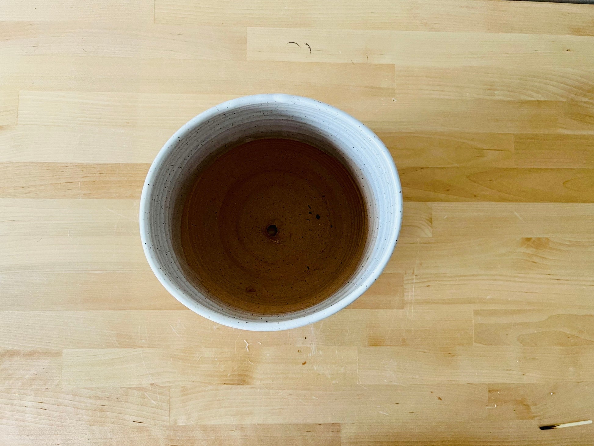 SECONDS- Round Bottom planter with drainhole.6" pot. white. ceramic handemade