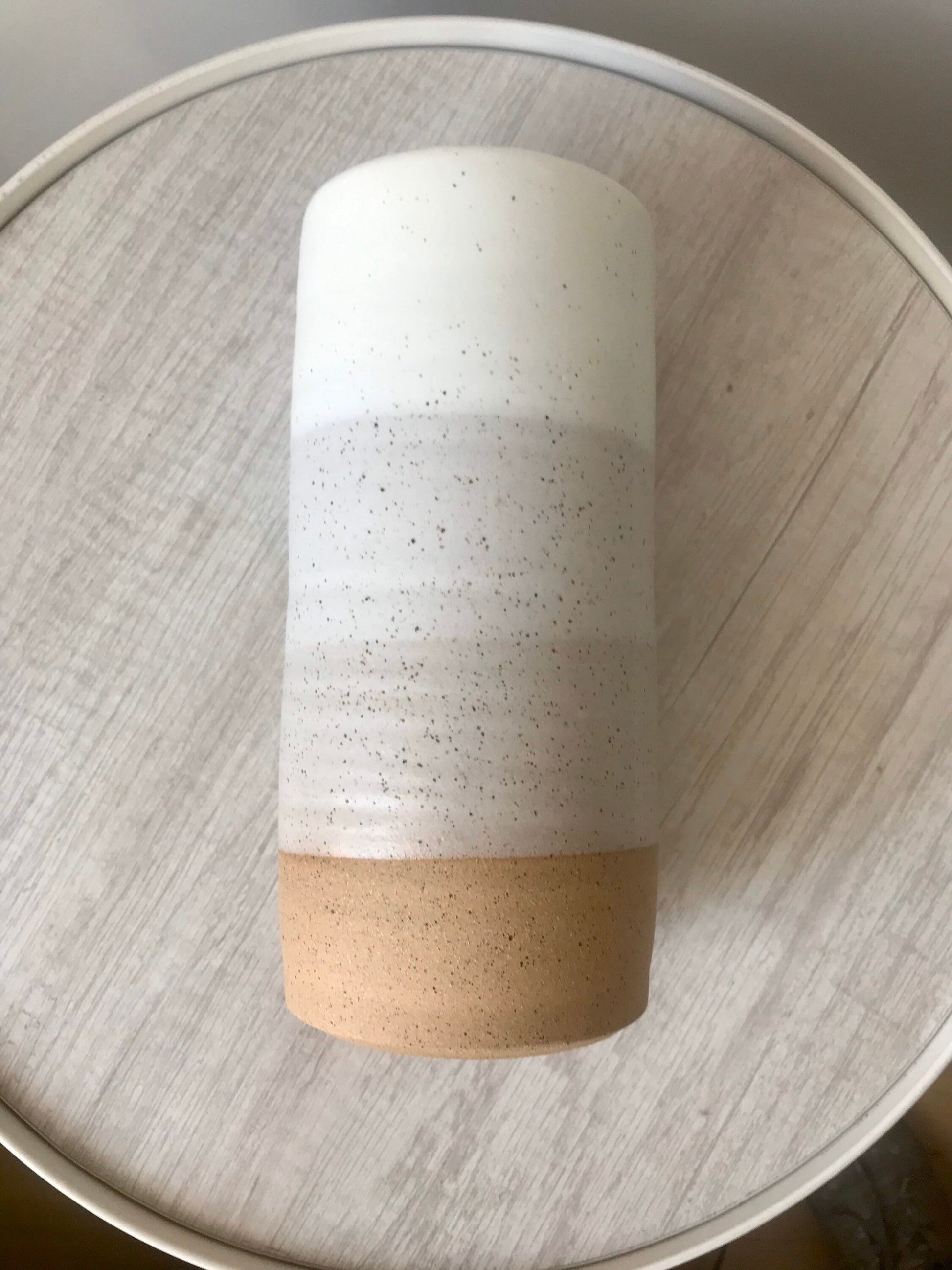 Speckeled white - tall ceramic utensil holder- flower vase- handmade