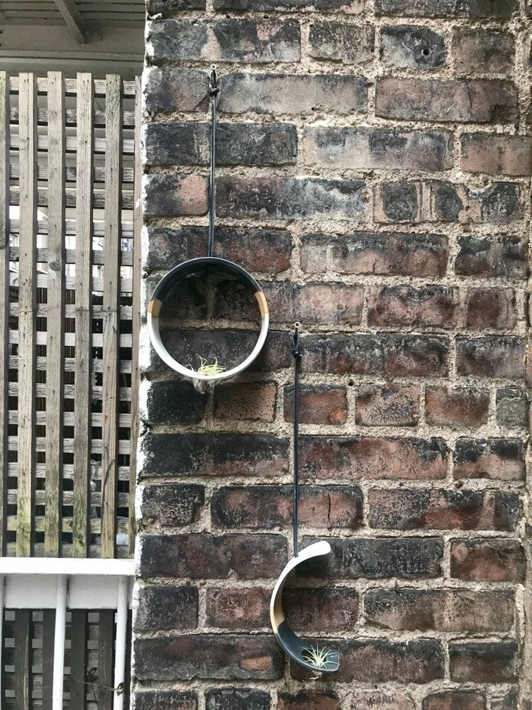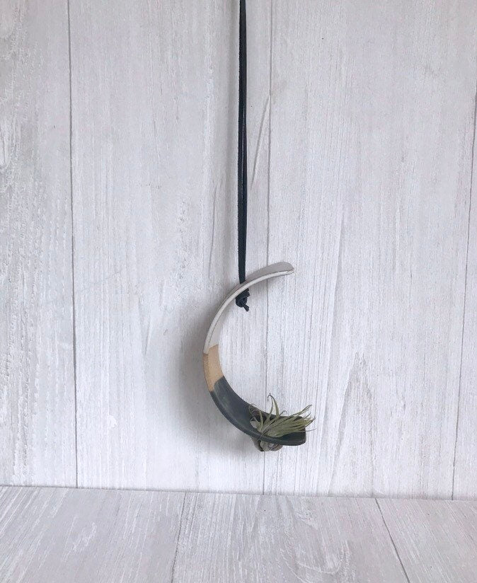 Tri color- Hanging crescent moon Airplant holder- ceramic- plant vase arc- three tone on beige stoneware