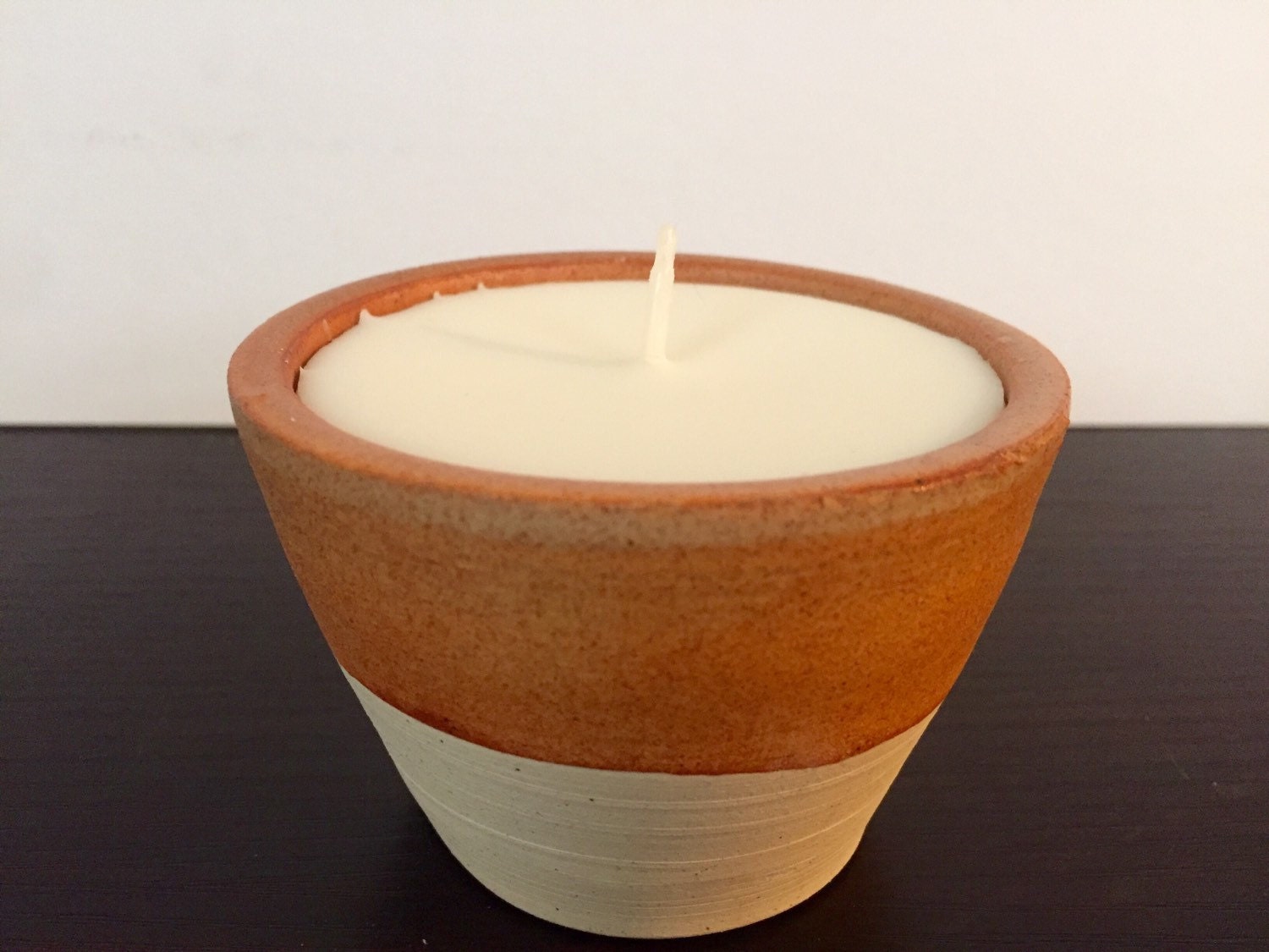 Handcrafted candles in Little ceramic jars. Each jar was made on the potters wheel then glazed in rustic colors and filled with fragranced wax. The candles have about ten hours of burn time and The jars themselves are reusable. Once the candle is melted all the way down just pop the remaining wax out and and replace with any candle of your choosing.